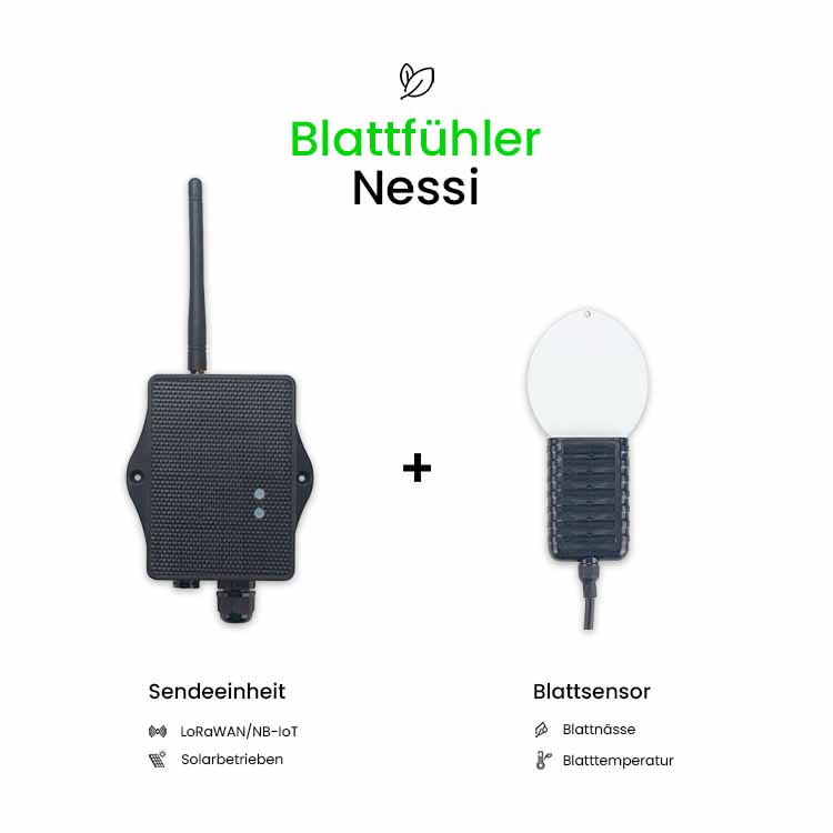 Nessi erkennt genau, wie nass und wie lange nass deine Pflanzen sind. Gleichzeitig misst er präzise die Temperatur der Blätter. Mit diesen Daten kannst du gezielt handeln und deine Pflanzen optimal schützen.